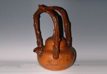 • 紫砂壶图片:特大壶十几年前的老壶 高级工艺师邵新和雕刻==[东坡提梁壶] - 宜兴紫砂壶网