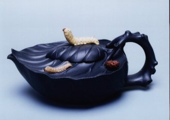 这类仿生象形壶艺作品,按照紫砂与茶文化品茗鉴赏的理与趣相结合的品味要求,做到雅而不俗,用器皿去模拟自然,造型与结构赏用兼备、泥料巧色朴而不艳,得形易出神难。谢曼伦在多年的紫砂耕耘中,创作出多款以竹、松、梅为题材的优秀代表作品。《桑宝壶》的成功推出,则是她从事花货创意塑造道路上的又一飞跃,并成为其代表作品,得到紫砂爱好者的青睐和壶艺界同仁的高度赞誉。
