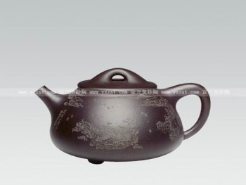 • 紫砂壶图片:刻山水石瓢壶 - 宜兴紫砂壶网