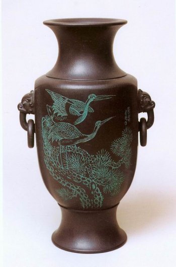 • 紫砂壶图片:百寿瓶2 - 宜兴紫砂壶网