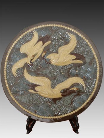 一、独创“半浮雕”,“立体浮雕”堆贴法,为弘扬民间工艺作出历史贡献。在从事宋代已著称于世,与紫砂,均釉并称宜兴陶瓷“中国民间三绝”得均陶堆花艺术创作中,实现了从传统“平贴法”到“半浮雕”“立体浮雕”堆贴法的创作。代表作无锡锡惠公园浮堆九龙壁被誉为“中国四大九龙壁之一”,堆花“蟠龙陶台”在中南海紫光阁收藏陈设。创作中借鉴民间姊妹艺术表现形式,首开堆花艺术品时代先河。继而带领和培养一大批专技人员把堆花运用在紫砂陶艺创作上,为宜兴陶都作出了重大贡献。