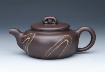 宜兴紫砂壶网 > 紫砂壶商城 > 如意腰鼓壶 紫五色土绞泥 紫砂壶作品信息