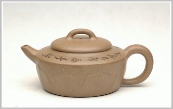 优质段泥,整体舒展,壶流有拙味,也翘得可爱:),桥钮搭配,非常协调。壶身桶下半部用莲叶筋装饰,破费功力,也彰显厚重婉约之美。品茗把玩实用之器!