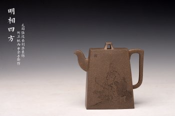 以申锡传器为摹,尽展所长,器型高挑浑厚,全在作者起承转合之际加以钝化衔接,整体依然呈现方器的挺拔与硬朗气质,柔与刚的巧妙结合与相互映衬~更有毛国强徒弟刘华精心装饰,相映得趣~