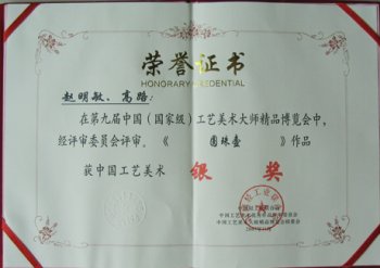 *《明月方壶》获第八届中国工艺美术大师精品博览会“金奖”、《鼎盛壶》获第八届中国工艺美术大师精品博览会“银奖”。