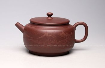 • 紫砂壶图片:《德福》泥料:底槽清 容量250cc 吴越刻绘 - 宜兴紫砂壶网