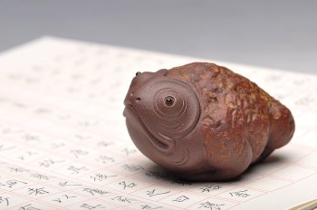 自幼酷爱紫砂艺术,宜兴紫砂,是一门特种陶艺。它的文化性、工艺性、技巧性都十分强烈,没有良好的文化修养和长期的深入生活,创作的作品就缺乏内涵,难免流于平庸。缺乏娴熟的工艺技巧,则难以把作品的内涵表达出来。刘景创作的“情趣系列”“意趣系列”作品从生活的各个角度充分反映出作者的匠心所在,他以写实的手法,精妙的工艺,将自然界的小动物刻划的生动活泼,栩栩如生,令人爱不释手。