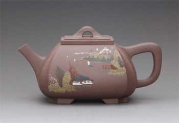 • 紫砂壶图片:四方抽角石瓢 - 宜兴紫砂壶网