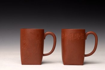 • 紫砂壶图片:詹黎明制盘 高路老师精刻 天地方圆杯~文房主人杯   - 宜兴紫砂壶网