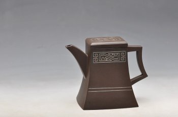 • 紫砂壶图片:吕尧臣 四方 镶嵌银丝  只供欣赏 - 宜兴紫砂壶网