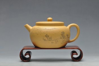 宜兴紫砂壶网 > 紫砂壶商城 > 墨陶装饰 王翔山水 全手古柿 淡雅得趣 紫砂壶作品信息