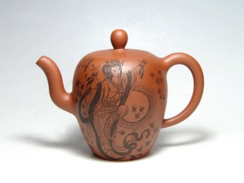 • 紫砂壶图片:美人肩(刻飞天) - 宜兴紫砂壶网