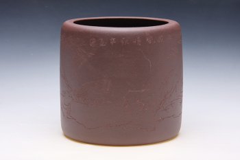 • 紫砂壶图片:“南国风情”笔筒 - 宜兴紫砂壶网