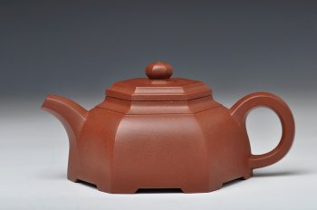 此壶呈六方蒙古包状,线条清爽自然,块面挺拔磊落,整体壶身很是稳重,一弯嘴和把圈亦为六方状,与壶身相应和,壶肩与壶盖的叠加块面也做呼应,装饰恰当,更显底盘稳当,是一款做工精致而有难度的壶,细节线条处理非常老辣,冬日来一具方器,与众友共品方器之美,茶香之味,岂不乐哉!