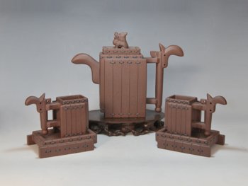 首创抽拉壶盖。北京奥运壶、九九回归壶、辉煌壶,以及蹬狮壶,都采用抽拉式壶盖,不用打开壶盖,只需按动盖上的小屉,便显现出注水口,底盖放茶叶,注水方便简捷。
