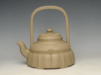 • 紫砂壶图片:裙花提梁  泥料:本山绿泥  容量:550cc - 宜兴紫砂壶网