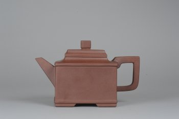 壶体造型比例协调、线面挺括有力、轮廓分明、全器气势挺拔;英姿飒爽、此壶壶型方正、线条挺直、口盖紧密平整、嘴把方面切体、钮挺而大气、方中运秀、别具雅致!