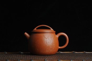 • 紫砂壶图片:优质赵庄朱泥全手工汉瓦 方健双刀文气装饰静心罗汉图 - 宜兴紫砂壶网
