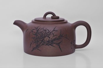 • 紫砂壶图片:仿古井栏壶(中国美院著名画家张留中书画) - 宜兴紫砂壶网