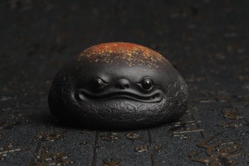 • 紫砂壶图片:美宠特惠 回馈壶友 精致性价比黑泥彩背金蟾盖托茶宠长8cm高度4cm左右 - 宜兴紫砂壶网
