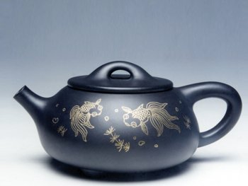 骨肉匀挺,壶身金纹对鱼。