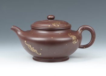 • 紫砂壶图片:描金高水扁 - 宜兴紫砂壶网