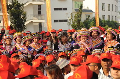 活动现场,身着少数民族服装的双江人民热情地欢迎宾客的到来